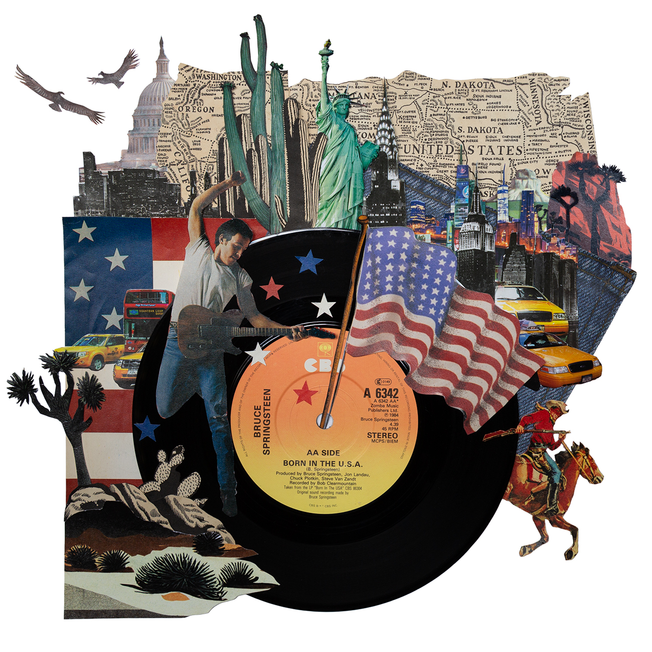 Signed giclée prints of original vinyls with collaged, playful, paper embellishments.