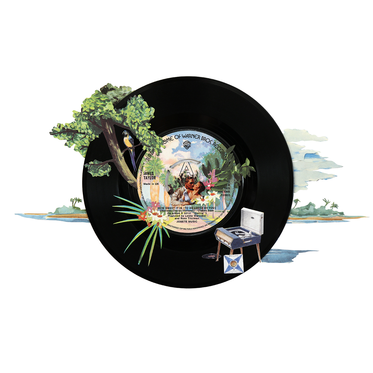 Signed giclée prints of original vinyls with collaged, playful, paper embellishments.