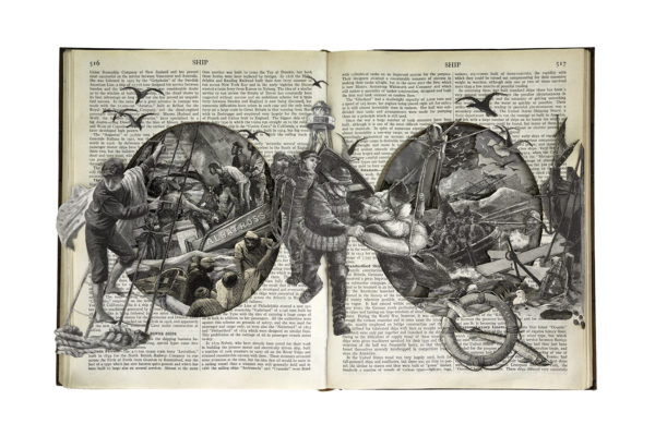 Signed giclée prints of collaged encyclopedia entries based on each letter of the alphabet.