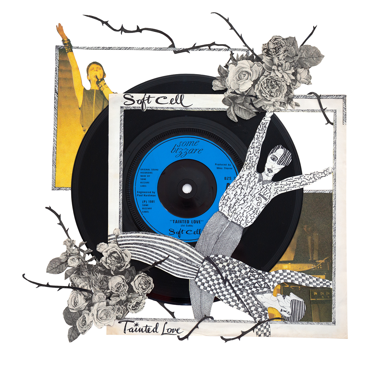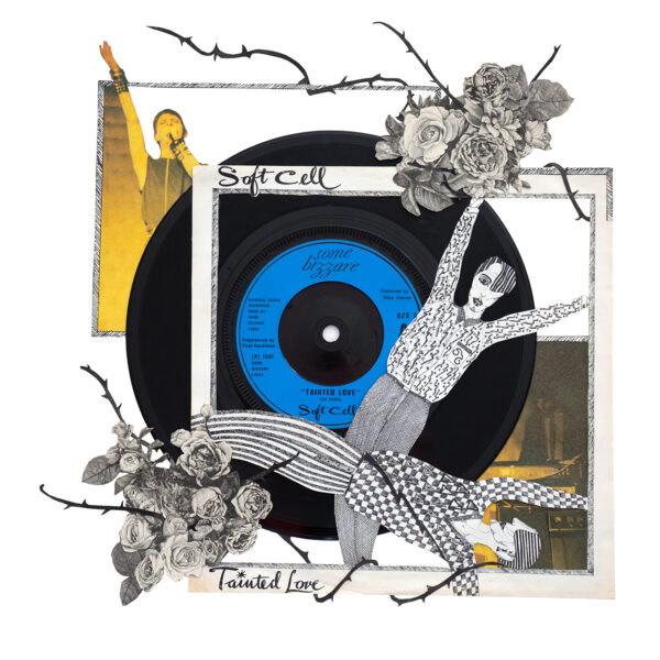 Signed giclée prints of original vinyls with collaged, playful, paper embellishments.
