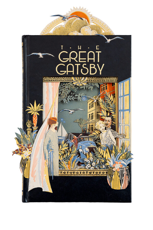 Signed giclée prints of collaged book works inspired by original titles, creating layered artworks.