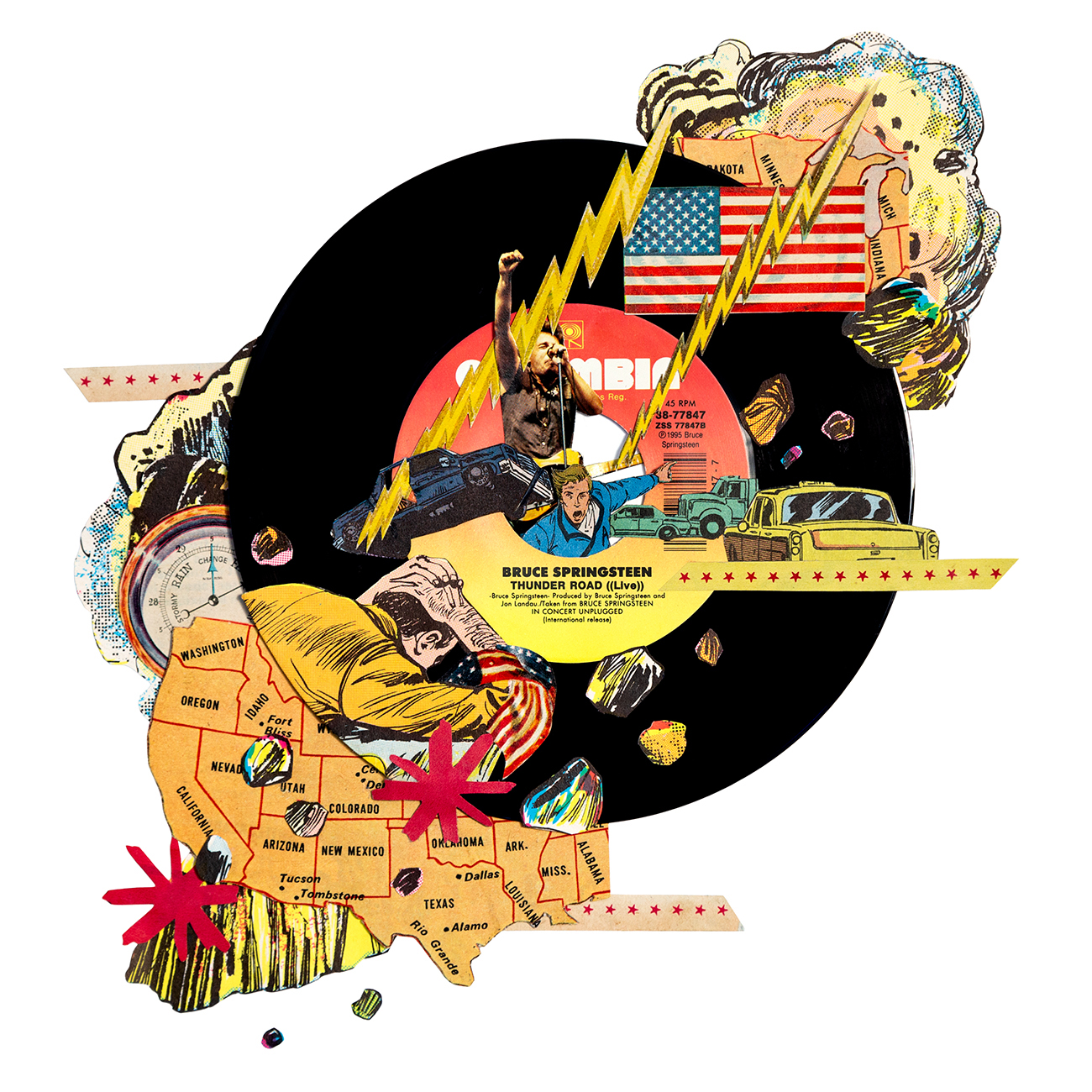 Signed giclée prints of original vinyls with collaged, playful, paper embellishments.